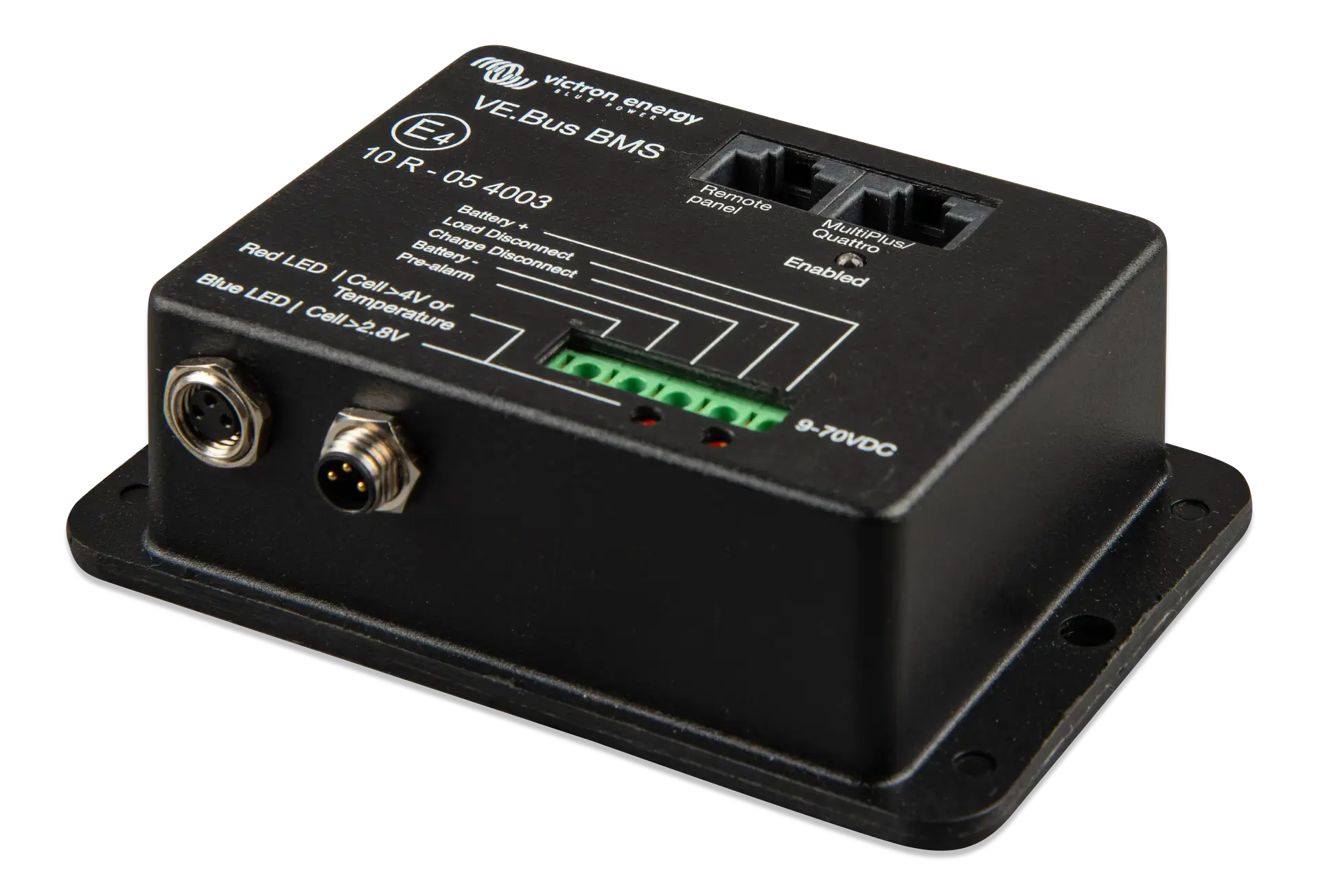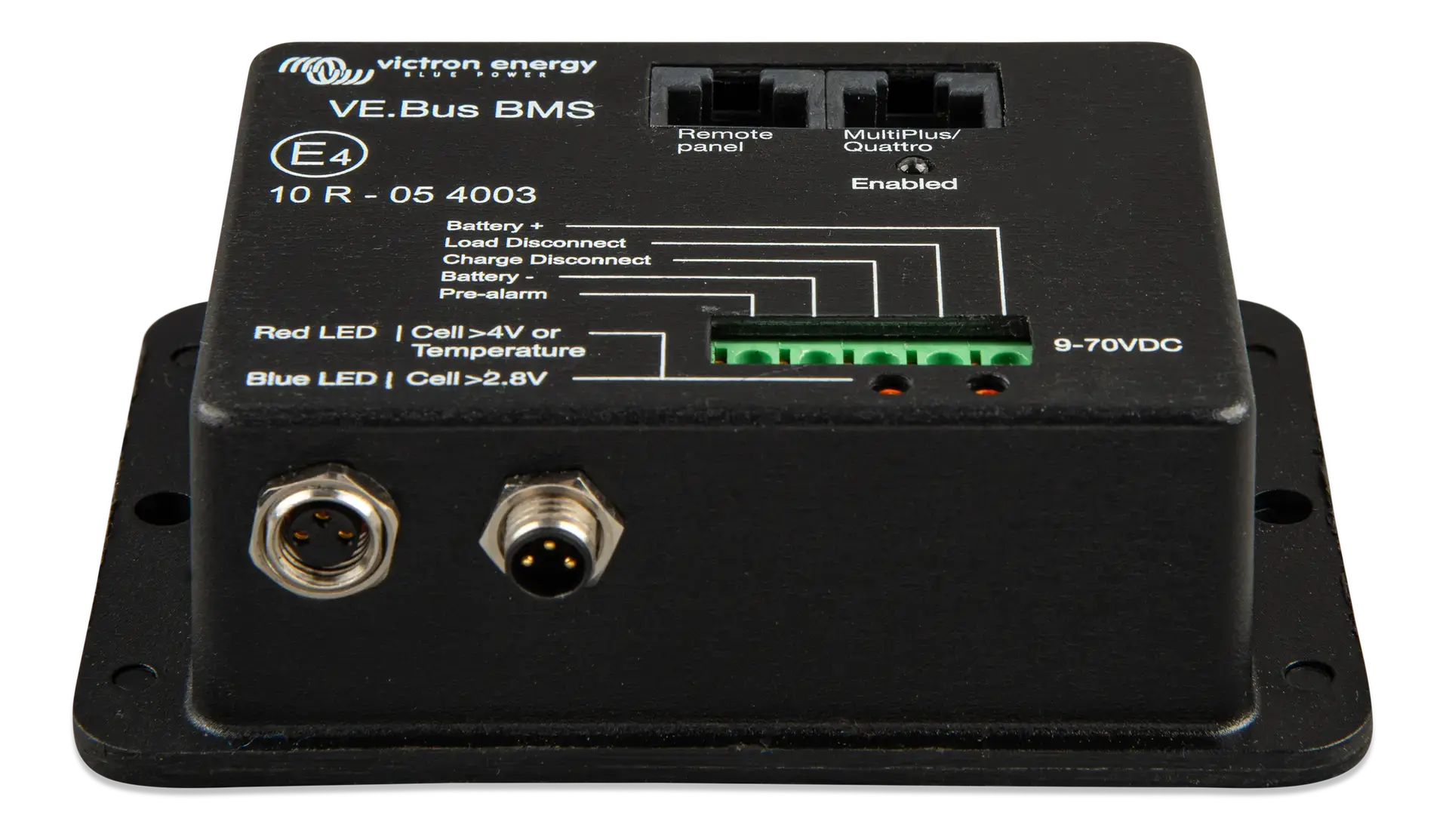 VE.Bus BMS, 12 V, 24 V ve 48 V sistemlerde çalışabilir ve Victron Energy’nin MultiPlus, Quattro veya Phoenix gibi ürünleri ile entegre şekilde kullanılabilir. Ayrıca sistem kapanması durumunda bir GX cihazının güç almasını sağlayan yardımcı güç terminalleri de içerir.